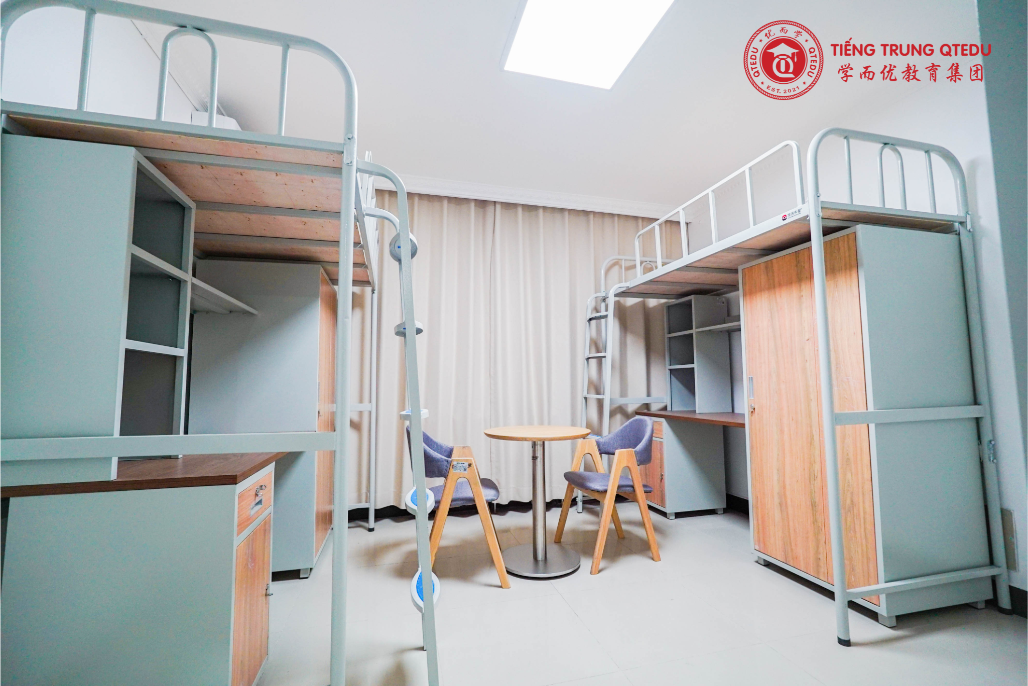 Ký túc xá rộng rãi, sạch sẽ và tiện nghi với phòng ở thoáng mát. Phần lớn là phòng 8 người nhưng chỉ ở 6 – 7 người, chỗ trống để đồ rất tiện. Giường tầng với bàn học riêng, mỗi người có tủ, bàn và kệ sách riêng. Phòng vệ sinh riêng, đầy đủ điều hòa, sưởi, quạt – mùa đông không lạnh, mùa hè không nóng. Có phòng giặt công cộng, quét mã là sử dụng, cực tiện lợi.