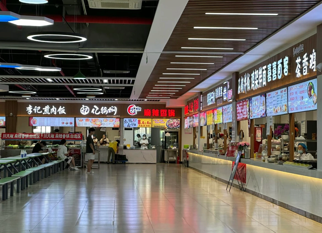 – Khu phố thương mại: Có Luckin Coffee, Hushang Ayi, Mixue Bingsheng và nhiều quán lẩu cay, mì, cơm xào, tiệm bánh.