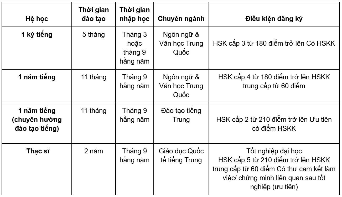 Lưu ý: Mỗi trường có thể có sự khác biệt nhỏ. Ví dụ: Trường Đại học Hạ Môn mở đăng ký học bổng Viện Khổng Tử năm 2025 từ 10/4 đến 10/5.